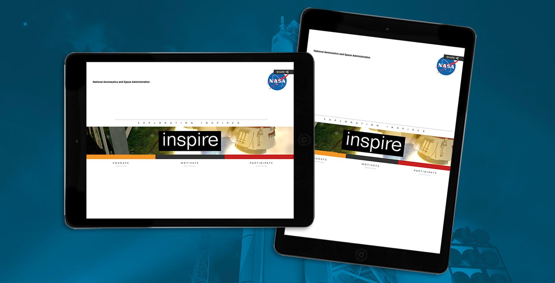 NASA approached our team seeking a promotional piece for trade shows to generate excitement around their new exploration goals. Collaborating with their marketing team, we developed a versatile concept that could be used across multiple events and updated online based on the event’s focus.